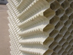 其中斜折波玻璃钢冷却塔填料的特点是重量轻,强度大,阻燃性能好、耐腐蚀,设计先进,通风阻力小,亲水性强,接触面积大等。六角蜂窝冷却塔填料由聚氯乙 烯、聚丙烯淋水片,经加热模压成型制得蜂窝玻璃钢冷却塔填料。有无捻玻璃布作增强填料制得玻璃钢填料。这种玻璃钢冷却塔填料适合给排水处理的沉淀工艺中, 具有适用范围广、沉淀效果佳、占地面积小等特点。